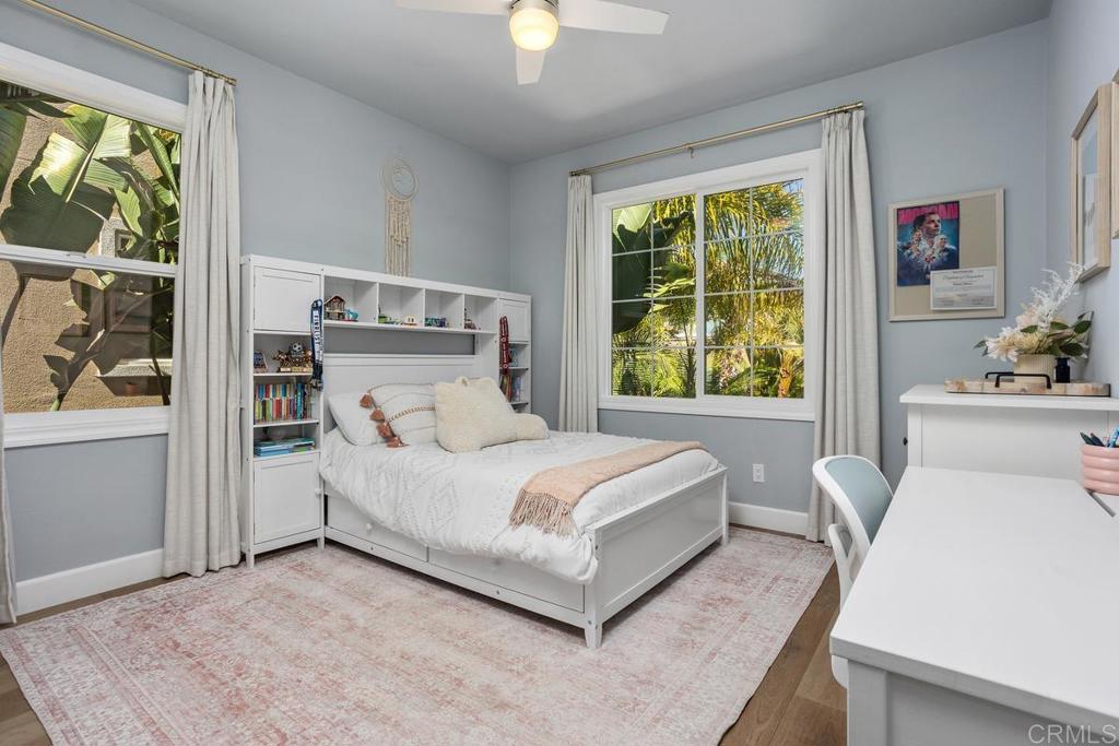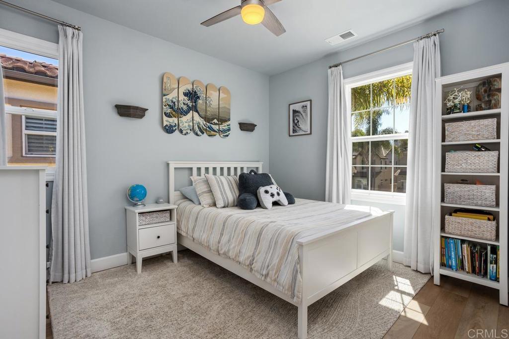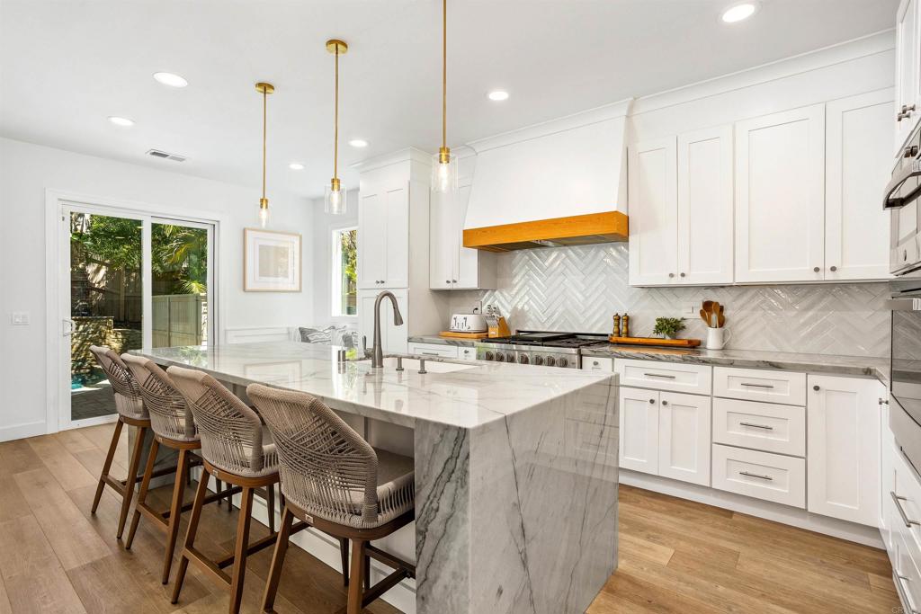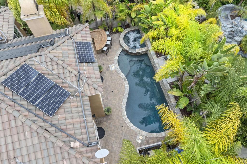 5-Bedroom Pool Home with Designer Upgrades! This stunning entertainer's retreat offers true California indoor/outdoor living with a sparkling pool and luxurious upgrades throughout. Tucked in the highly desirable Venzano community near San Elijo Hills, this 3,437 sq ft home (the largest floor plan) is a must see! Step inside to find a recently remodeled modern kitchen, new luxury vinyl plank flooring upstairs, updated lighting & fixtures, new windows, and owned solar. The chef's kitchen is a showstopper with white shaker cabinetry, soft-close drawers, Quartz double waterfall island, custom pendant lighting, herringbone backsplash, and high-end appliances--including a Dacor built-in fridge, range/oven with custom hood, double ovens, Bosch dishwasher, wine fridge, and appliance garage. A spacious butler's pantry with a second wine fridge and walk-in pantry adds abundant storage. La Cantina doors open wide to your turnkey outdoor space- easy to care for and enjoy year-round. A private backyard oasis featuring a pool with Baja shelf, spa with waterfall, built-in BBQ with outdoor fridge, and a Canary Date palm anchors lush tropical landscaping. Perfect for entertaining or relaxing with the ocean breezes. The versatile floor plan includes 5 bedrooms, 4 bathrooms, an office, and loft. The main level offers a full bed and bath, large living/dining combo, and office with custom built-ins. Upstairs you'll find 4 additional bedrooms, 3 bathrooms, a loft, and a generous primary suite with dual closets, jetted tub, and oversized shower. Additional highlights: solar for house and pool, A/C, tankless water heater, laundry room, and a 2-car garage with storage. Exterior features include a Dutch door entry, stamped concrete driveway, and mature, tropical landscaping. Enjoy the Venzano neighborhood, known for its quiet, wide streets, tot lot, and sense of community. Walk to San Elijo Elementary and Middle Schools, zoned for popular San Marcos High, and just steps to Questhaven Park, 18 miles of hiking and biking trails, and the vibrant town center with shops, dining, and sports fields. Modern upgrades and resort-style living!