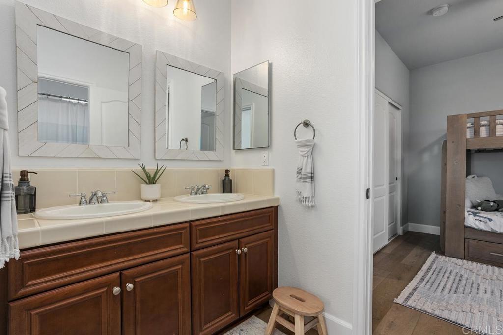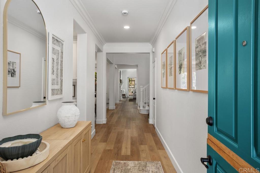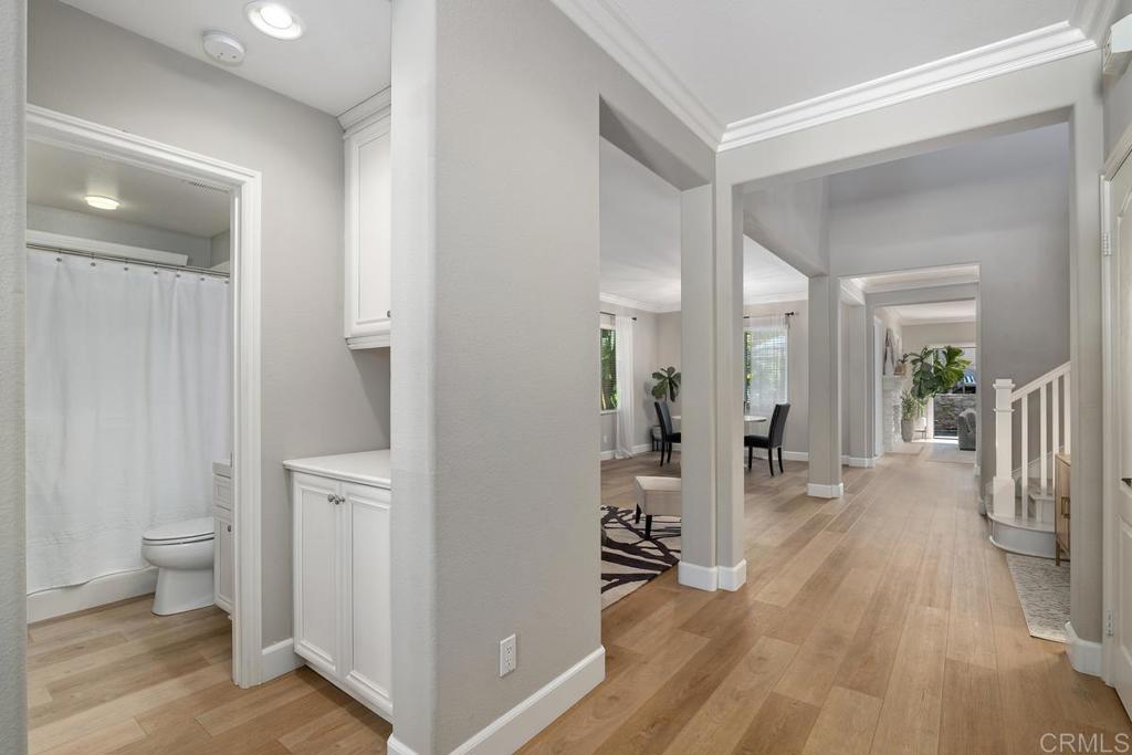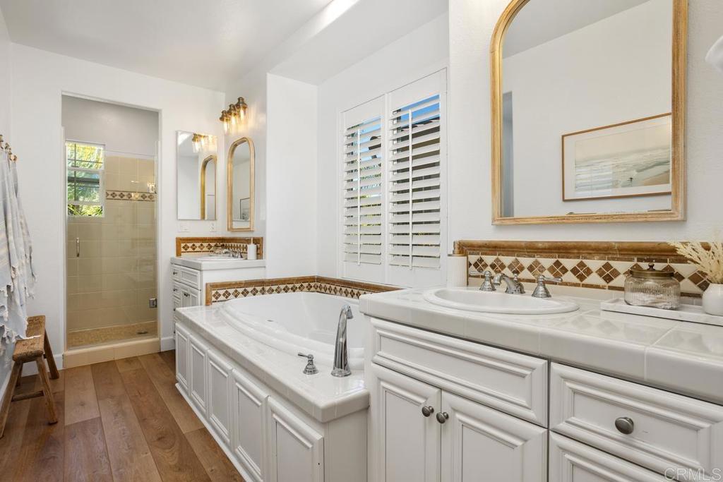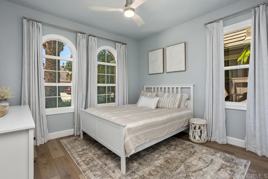 5-Bedroom Pool Home with Designer Upgrades! This stunning entertainer's retreat offers true California indoor/outdoor living with a sparkling pool and luxurious upgrades throughout. Tucked in the highly desirable Venzano community near San Elijo Hills, this 3,437 sq ft home (the largest floor plan) is a must see! Step inside to find a recently remodeled modern kitchen, new luxury vinyl plank flooring upstairs, updated lighting & fixtures, new windows, and owned solar. The chef's kitchen is a showstopper with white shaker cabinetry, soft-close drawers, Quartz double waterfall island, custom pendant lighting, herringbone backsplash, and high-end appliances--including a Dacor built-in fridge, range/oven with custom hood, double ovens, Bosch dishwasher, wine fridge, and appliance garage. A spacious butler's pantry with a second wine fridge and walk-in pantry adds abundant storage. La Cantina doors open wide to your turnkey outdoor space- easy to care for and enjoy year-round. A private backyard oasis featuring a pool with Baja shelf, spa with waterfall, built-in BBQ with outdoor fridge, and a Canary Date palm anchors lush tropical landscaping. Perfect for entertaining or relaxing with the ocean breezes. The versatile floor plan includes 5 bedrooms, 4 bathrooms, an office, and loft. The main level offers a full bed and bath, large living/dining combo, and office with custom built-ins. Upstairs you'll find 4 additional bedrooms, 3 bathrooms, a loft, and a generous primary suite with dual closets, jetted tub, and oversized shower. Additional highlights: solar for house and pool, A/C, tankless water heater, laundry room, and a 2-car garage with storage. Exterior features include a Dutch door entry, stamped concrete driveway, and mature, tropical landscaping. Enjoy the Venzano neighborhood, known for its quiet, wide streets, tot lot, and sense of community. Walk to San Elijo Elementary and Middle Schools, zoned for popular San Marcos High, and just steps to Questhaven Park, 18 miles of hiking and biking trails, and the vibrant town center with shops, dining, and sports fields. Modern upgrades and resort-style living!