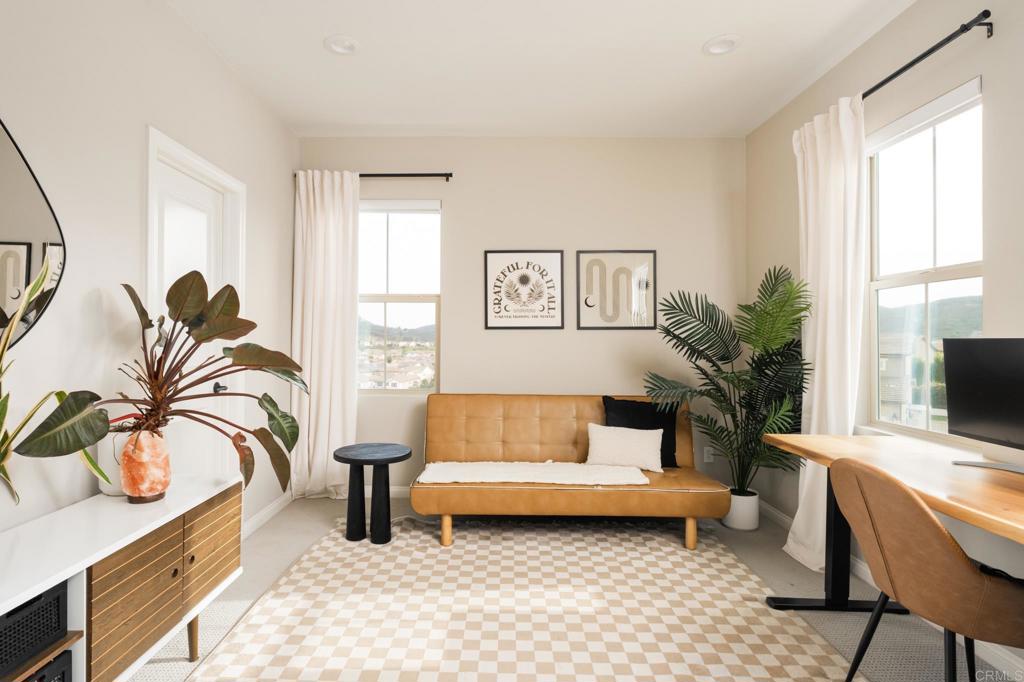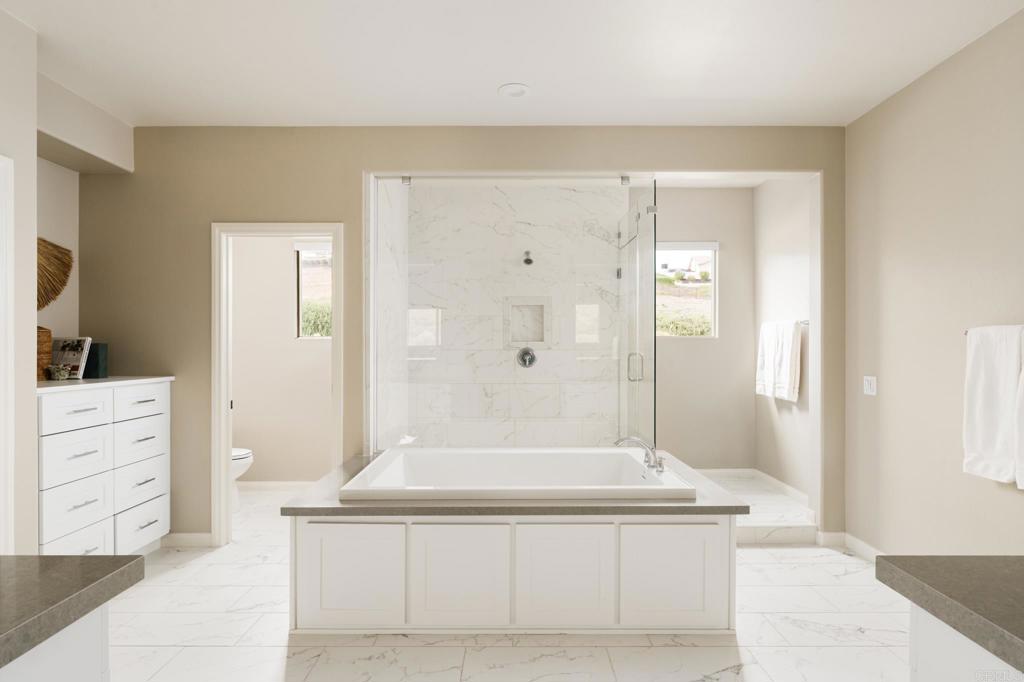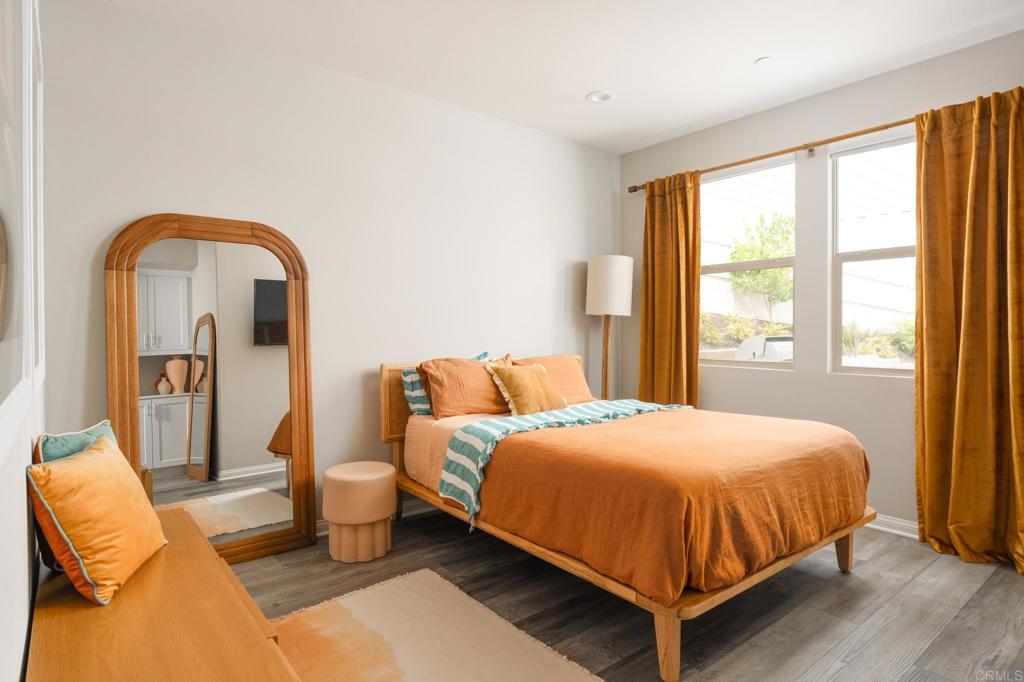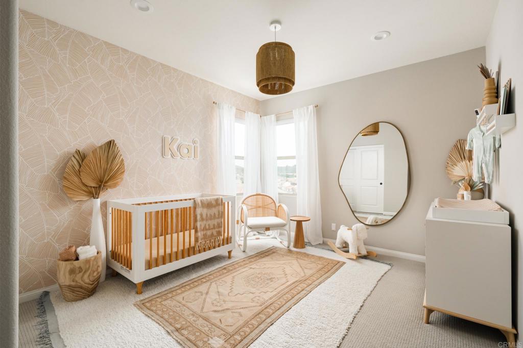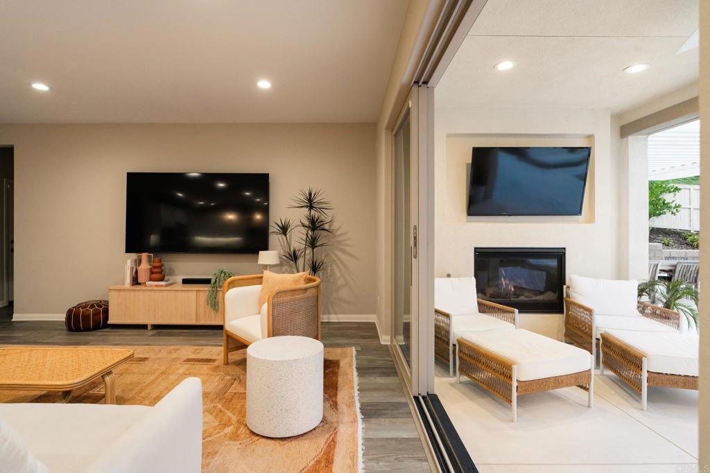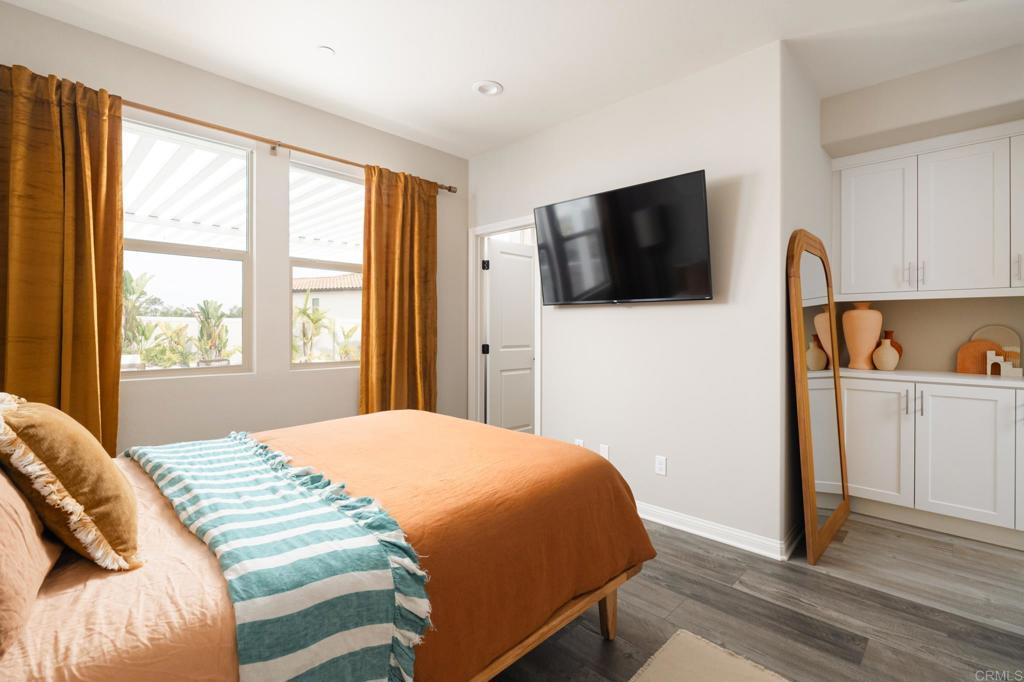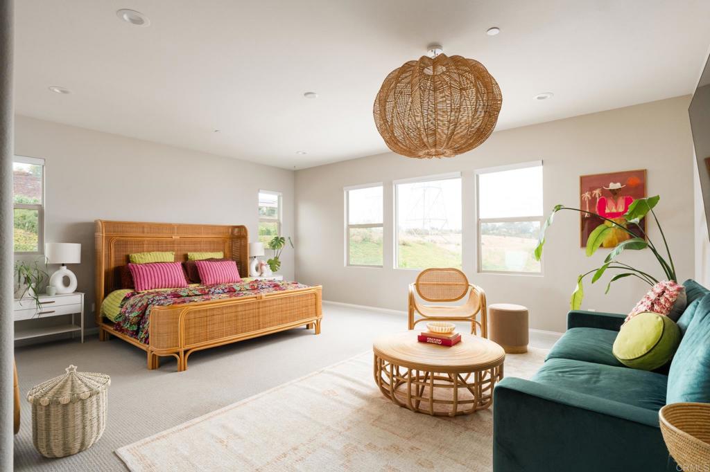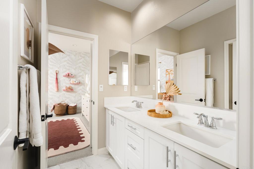 Gorgeous, newer home with modern resort-style yard! Set on a private, elevated 1/3 acre lot with sweeping mountain views, this exceptional property offers refined living in the coveted Whittingham neighborhood of Harmony Grove Village. With a long driveway, adjacent park, and added privacy, this home stands out! Built in 2020 and upgraded throughout, the expansive 3,778 sq ft floor plan features 5 bedrooms, 4.5 baths, including a desirable first-floor bedroom suite plus an additional guest powder room. The open-concept great room is the heart of the home, showcasing luxury vinyl plank flooring and seamless indoor-outdoor flow with sliding glass pocket doors. The covered California room is designed for year-round enjoyment with a fireplace, TV, and ceiling fan, opening to a true entertainer's backyard. The chef's kitchen is beautiful with a large quartz center island, designer pendants, GE Profile appliances, custom backsplash and generous walk-in pantry all opening to the main living and dining areas. Upstairs, there are four bedrooms, three bathrooms plus a spacious bonus room that offers endless flexibility as a media room, playroom, or retreat with a private view balcony. The primary suite is a true sanctuary, featuring a spa-inspired bathroom with a soaking tub, walk-in shower, and refined finishes as well as an luxurious walk-in closet. Step outside to your own private resort: a sparkling pool with Baja shelf and oversized infinity edged spa, built-in BBQ, fire pit, and large side yard with turf, all designed to maximize privacy and views. Additional highlights include owned solar, a 3-car tandem garage, dual A/C, upstairs laundry room with sink and cabinetry, and a tankless water heater. The yard features low maintenance landscaping with lighting as well as citrus and avocado trees. Residents of Harmony Grove Village enjoy access to The Grove clubhouse with pool, spa, wading pool, BBQ areas, shaded lounges, playgrounds, parks, dog park, and miles of scenic trails, all within a vibrant master-planned community known for its natural beauty and lifestyle amenities. Tucked into the rolling hills of Escondido's Harmony Grove, just minutes to shopping, dining, hiking and equestrian trails with easy access to coastal amenities, beaches, and major freeways. Turn-key, stylish, and ideally located!
