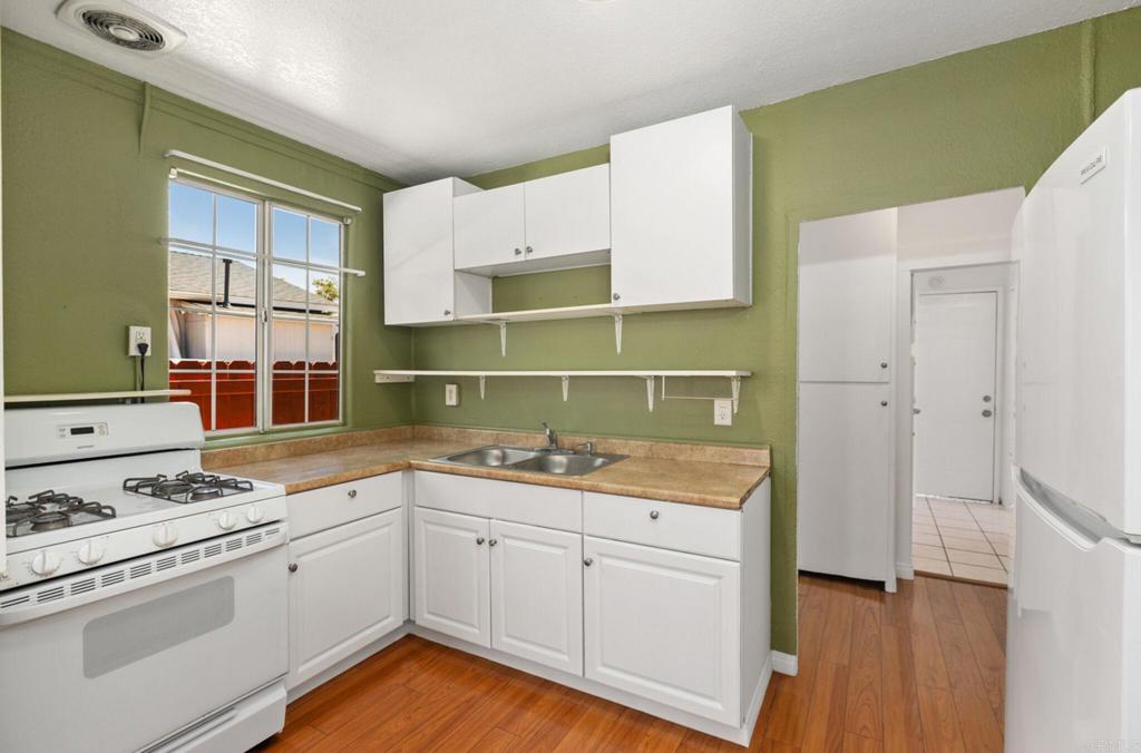 Investor's Dream! Versatile two-unit property in the heart of City Heights! Front Unit: 3 Bedrooms (one does not have a closet), 1 Bath, large, fully fenced front yard with roses, laminate/carpet/tile flooring, private back patio and long, gated driveway. Back Unit: 2 Bedrooms, 1 Bath, Large living room, updated kitchen cabinets and backsplash, back patio/driveway is private & gated! Both units are light & bright, freshy painted ready to generate income. Shared laundry in front unit with separate entrance. Whether you're looking to rent both units or occupy one while renting the other, this property offers flexibility and great income potential. Don't miss out on this turnkey opportunity in City Heights!