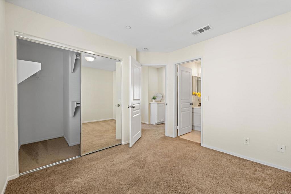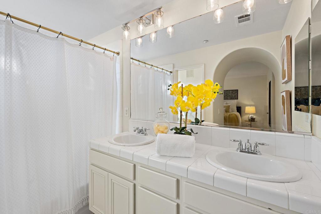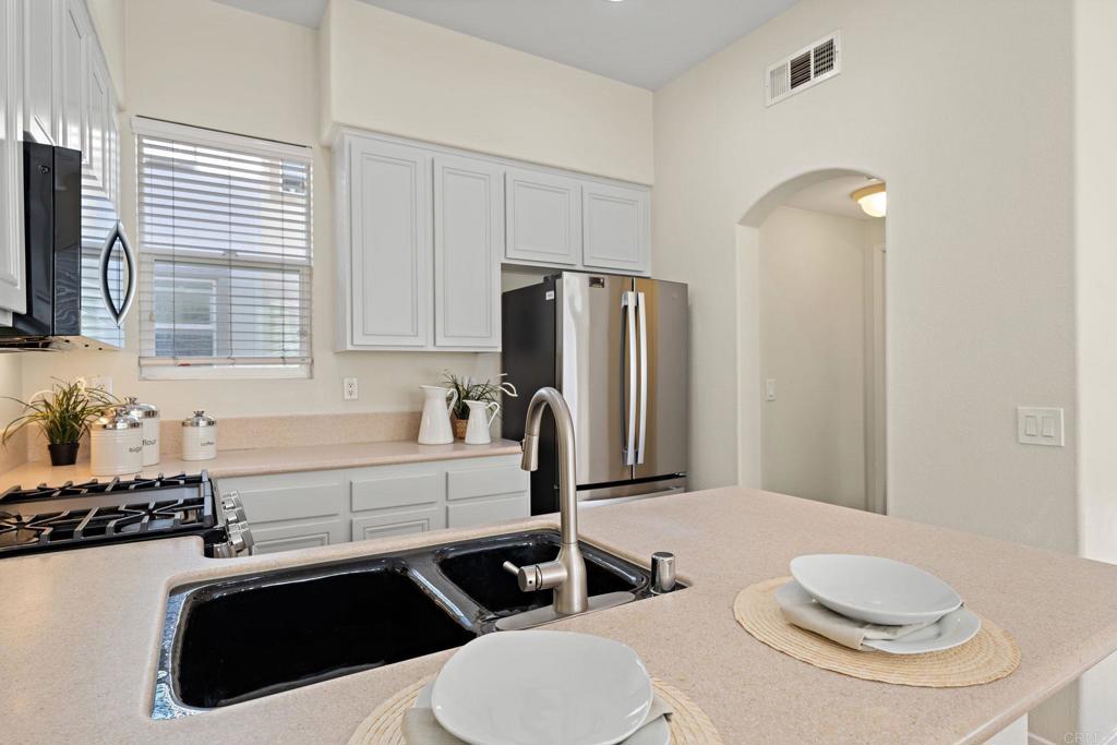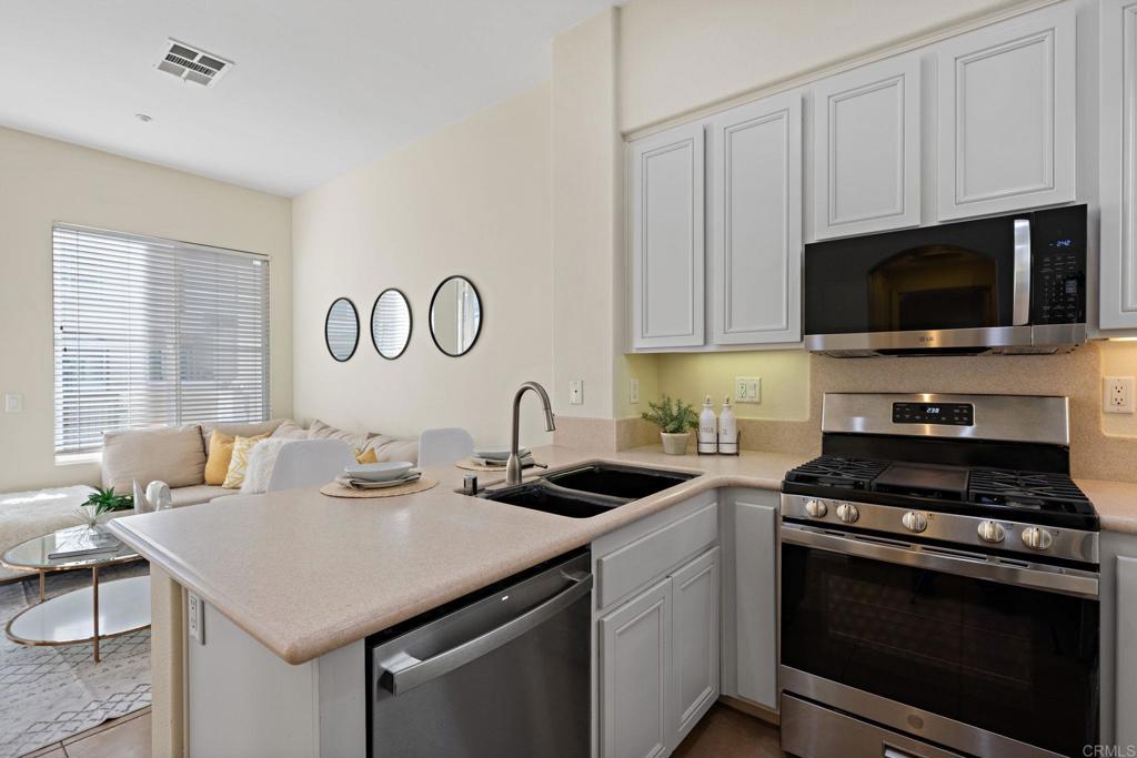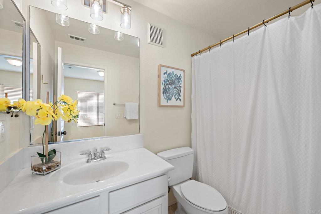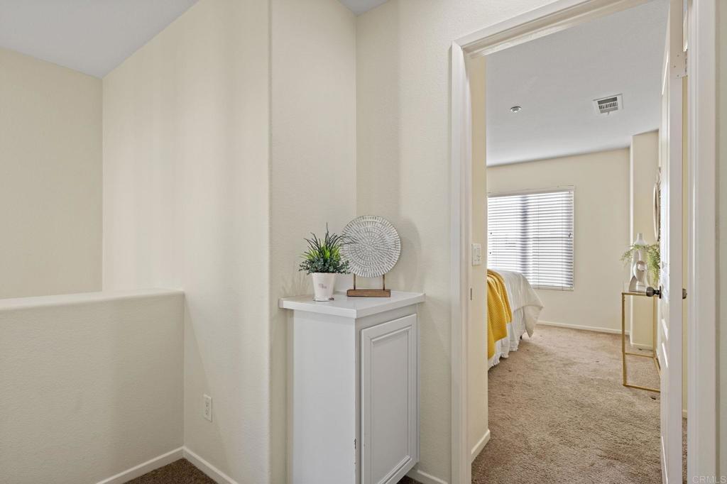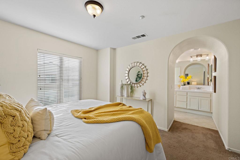 Move-in ready townhome in Coronado Ranch! This fantastic property in a desirable gated community offers an excellent opportunity for investors, first-time buyers, or buyers looking for a downsize. The entry level provides access to the attached two-car garage and laundry (washer/dryer included), while the second level features an open-concept living area with a kitchen and dining space, now equipped with new kitchen appliances. The top level offers two primary suites, each with ensuite bathrooms and new lighting fixtures. This home has LOW FEES and is located steps from amazing resort-style amenities including clubhouse, large pool, multiple parks, BBQ area, exercise room/gym, playground included with HOA. Coronado Ranch is a popular community located near Cal State San Marcos, close to shopping, restaurants, hiking trails, Discovery Lake, has easy access to the 78 Freeway and is zoned for desirable San Marcos Unified School District schools including Double Peak K-8.