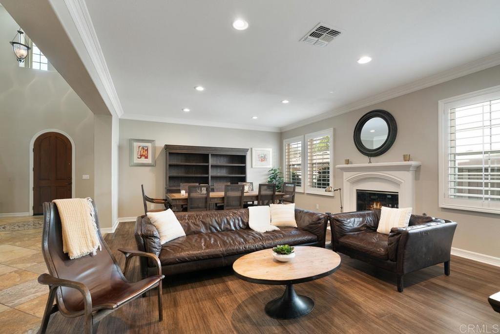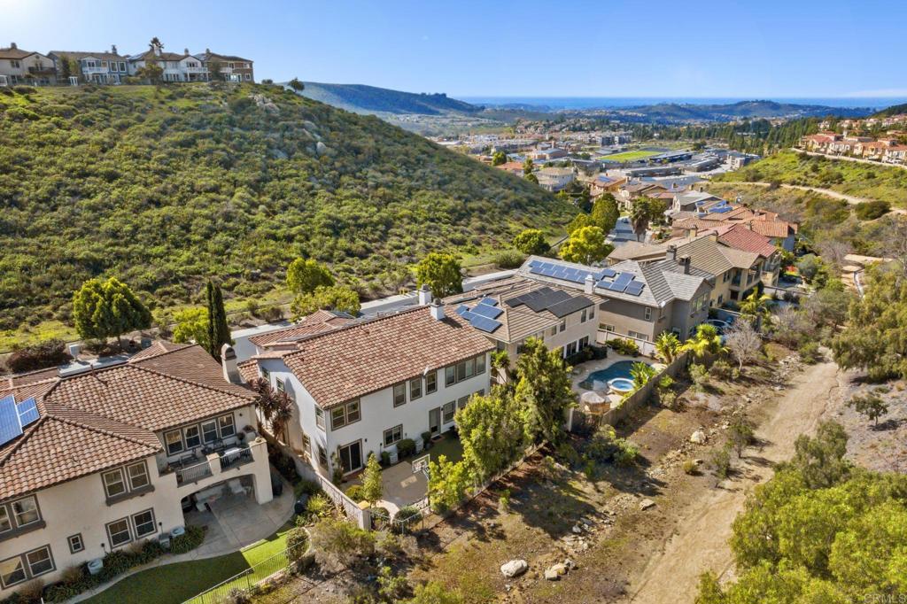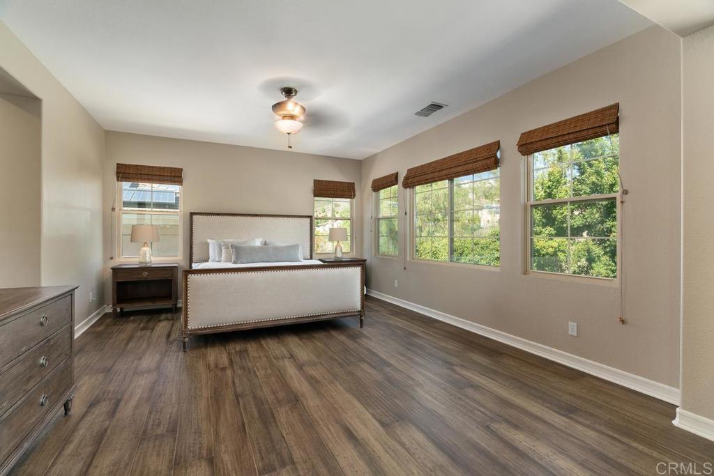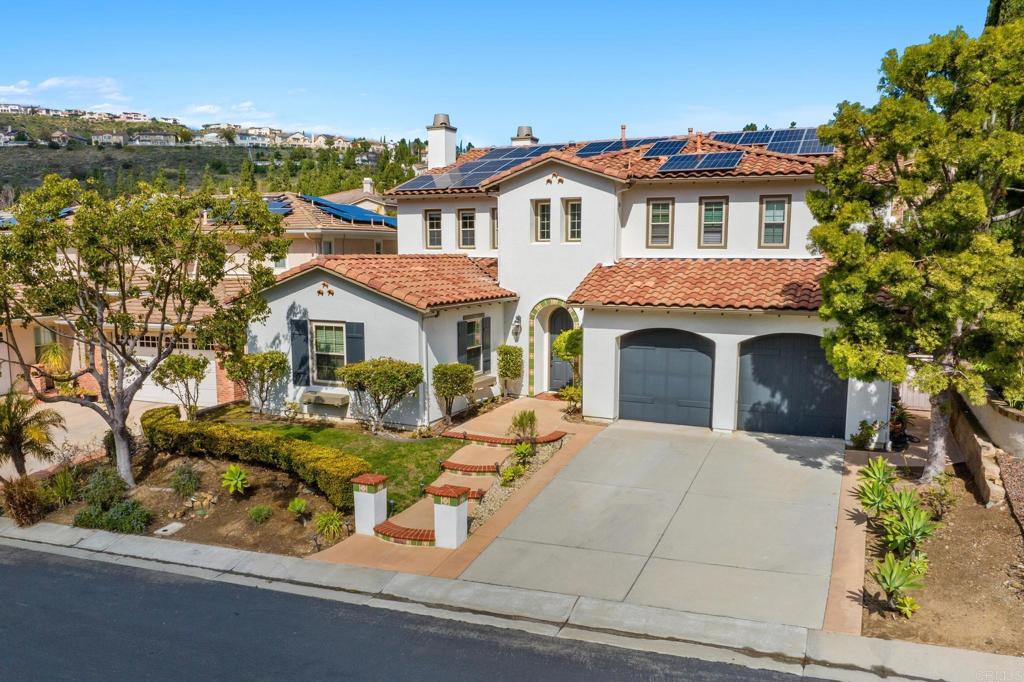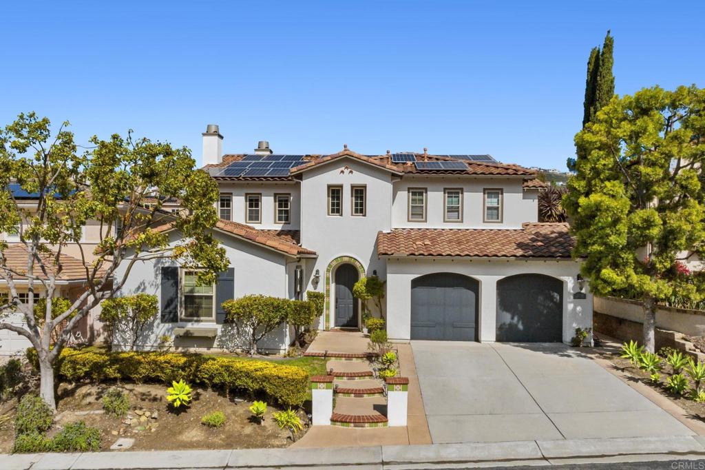 Gorgeous, upgraded San Elijo Hills home in a gated community! If you are looking for space, this popular floor plan has it all! This beautiful, Spanish-style home with generous solar has 5 bedrooms (one bed with ensuite bathroom downstairs) plus an office with French doors on main level and 4.5 bathrooms. Move-in ready, it is loaded with upgrades including Brazilian wide plank hardwood flooring throughout the home, tile, crown molding, plantation shutters and other designer window treatments. There's a huge gourmet kitchen with custom built-in breakfast bar and newer stainless steel appliances and granite center island with range. From the elegant entry with dual staircase to the living room/dining room with fireplace and the spacious family room open to the kitchen, this home is immaculate and inviting. On the second floor, there are four bedrooms including the master suite which features a retreat, dual closets with custom built-in organizers, upgraded bathroom with stone counters, large bathtub and separate shower. One bedroom has an ensuite bathroom and two bedrooms share a jack-n-jill bathroom. The backyard is very private with no neighbors behind and low maintenance with turf and patio/play area. This executive home also has dual A/C, reverse osmosis water filtration and a 3 car garage. Zoned for top-rated schools San Elijo Elementary, San Elijo Middle and San Marcos High School and close to Questhaven park. Enjoy all that San Elijo Hills has to offer with 18 miles of trails and unique town center with restaurants, shopping and more!