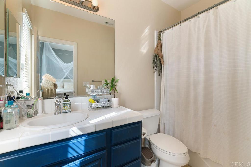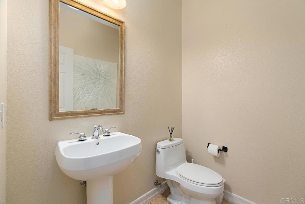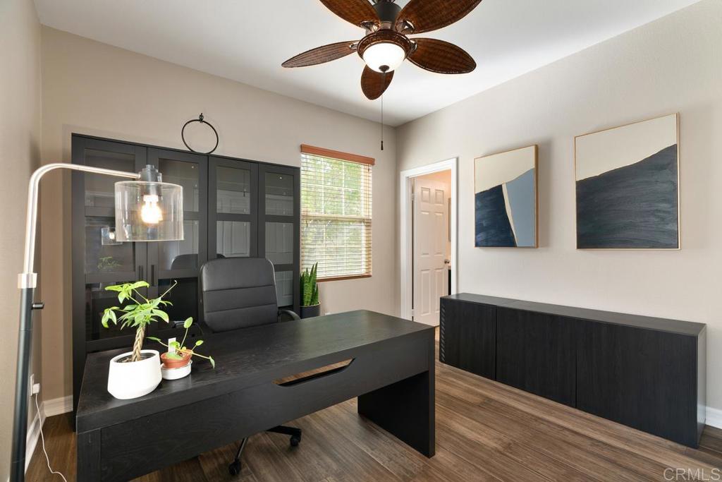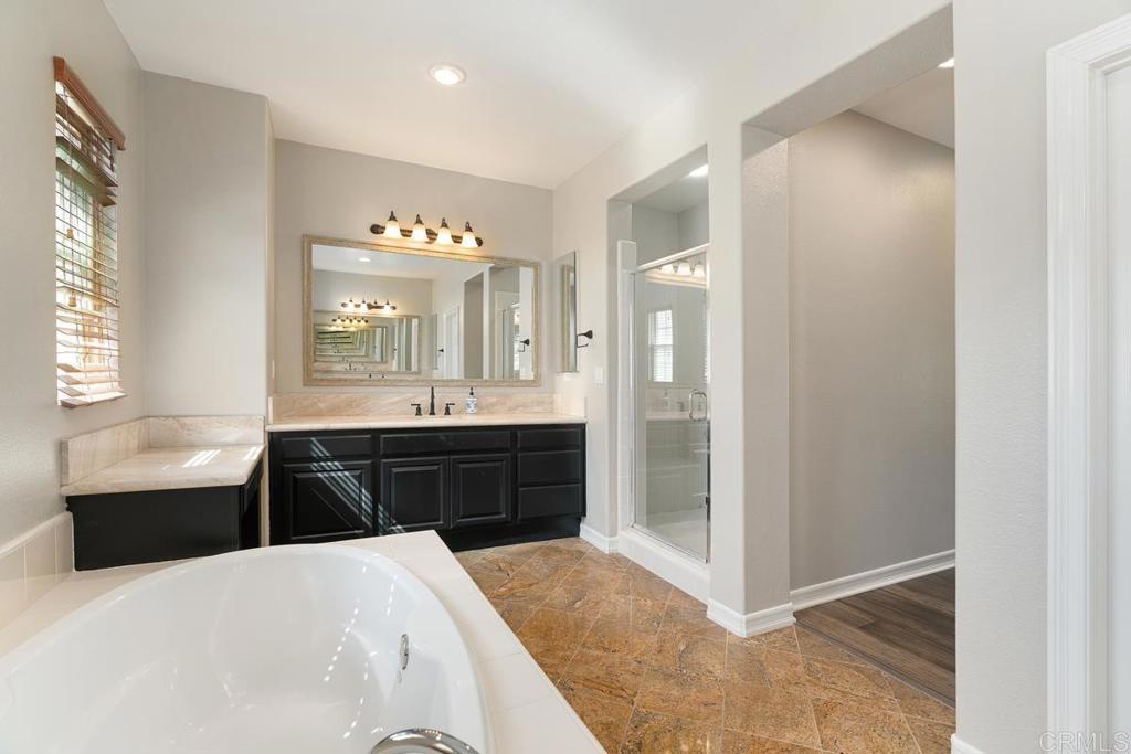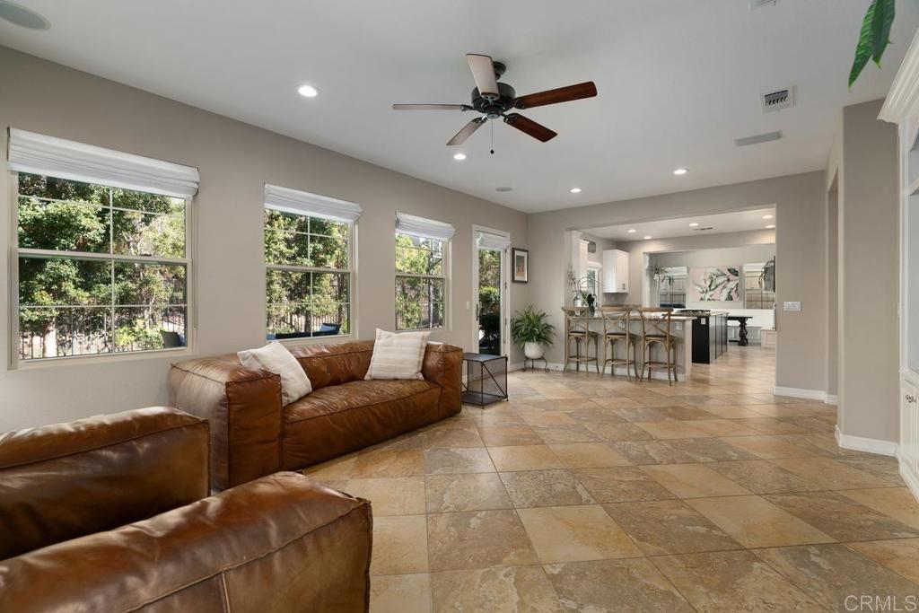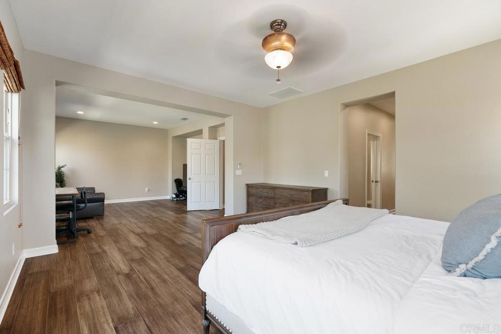 Gorgeous, upgraded San Elijo Hills home in a gated community! If you are looking for space, this popular floor plan has it all! This beautiful, Spanish-style home with generous solar has 5 bedrooms (one bed with ensuite bathroom downstairs) plus an office with French doors on main level and 4.5 bathrooms. Move-in ready, it is loaded with upgrades including Brazilian wide plank hardwood flooring throughout the home, tile, crown molding, plantation shutters and other designer window treatments. There's a huge gourmet kitchen with custom built-in breakfast bar and newer stainless steel appliances and granite center island with range. From the elegant entry with dual staircase to the living room/dining room with fireplace and the spacious family room open to the kitchen, this home is immaculate and inviting. On the second floor, there are four bedrooms including the master suite which features a retreat, dual closets with custom built-in organizers, upgraded bathroom with stone counters, large bathtub and separate shower. One bedroom has an ensuite bathroom and two bedrooms share a jack-n-jill bathroom. The backyard is very private with no neighbors behind and low maintenance with turf and patio/play area. This executive home also has dual A/C, reverse osmosis water filtration and a 3 car garage. Zoned for top-rated schools San Elijo Elementary, San Elijo Middle and San Marcos High School and close to Questhaven park. Enjoy all that San Elijo Hills has to offer with 18 miles of trails and unique town center with restaurants, shopping and more!